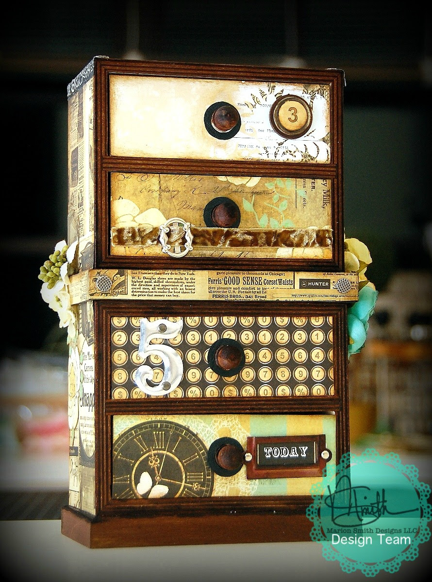 Hi everyone! Today, I'm sharing with you all an altered project using the cool and beautiful Nirvana collection by Marion Smith Designs. I love the color combinations of this collection and it is perfect for this wooden drawers.